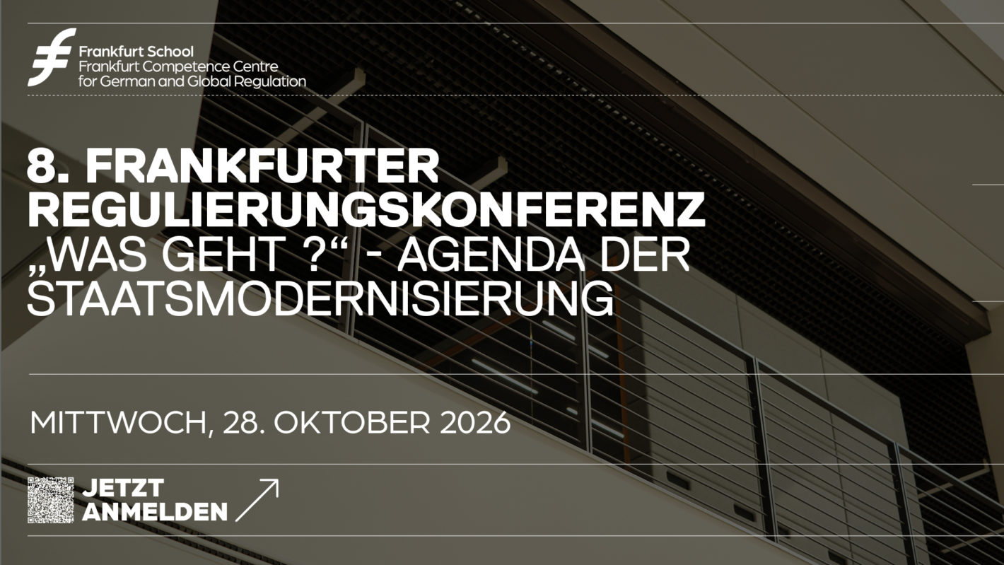 „Was geht ?“ – Agenda der Staatsmodernisierung wird am 28.Oktober 2026 die 8.Frankfurter Regulierungskonferenz stattfinden.